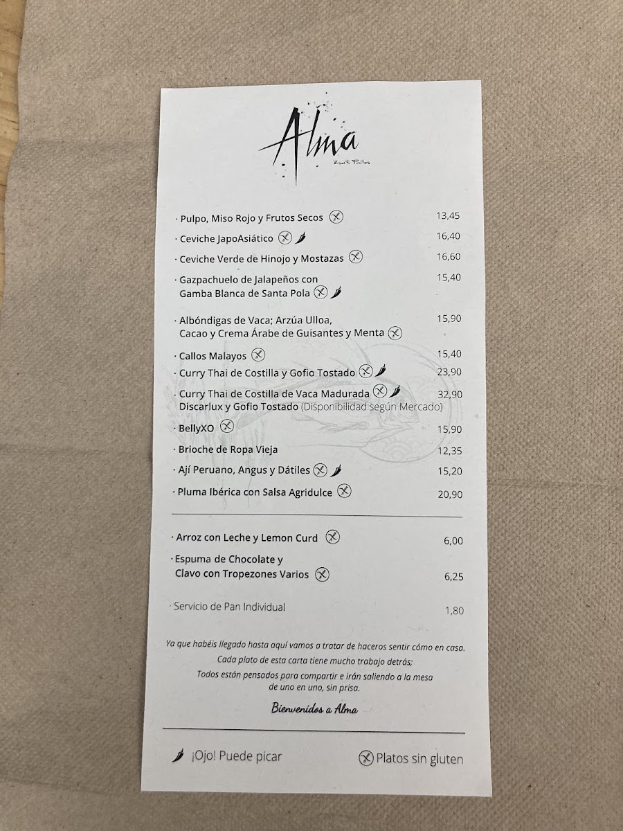 Whether you're a food enthusiast or a casual diner, Alma 'Cocina Viajera' invites you to savor each plate and enjoy a memorable meal in the heart of Alicante.